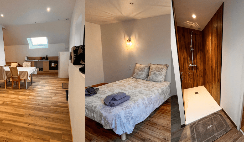 Aménagé récemment, ce gîte de 68m2 pouvant accueillir 3 personnes mets à votre disposition :